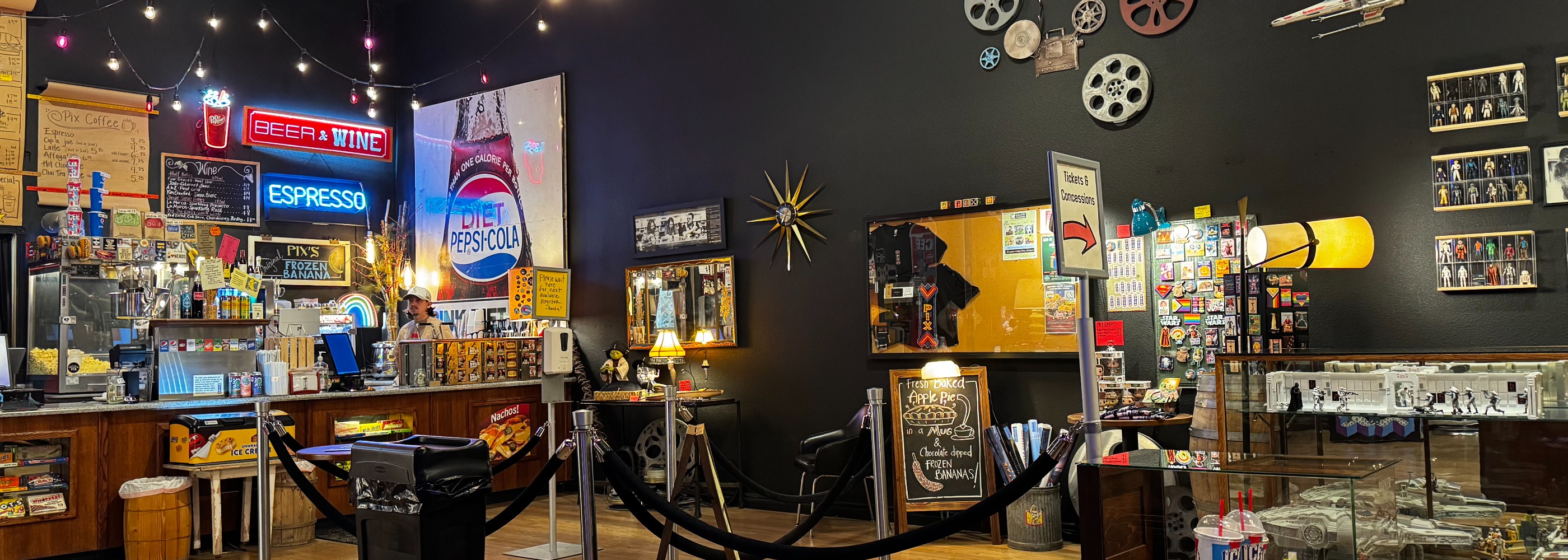 As evening approaches, settle in for classic entertainment. The Pix Theater offers a charming movie-going experience with more than just popcorn and candy. Guests can enjoy burgers, sandwiches, and even a hummus plate delivered directly to their seats, which feature convenient slide-out trays.